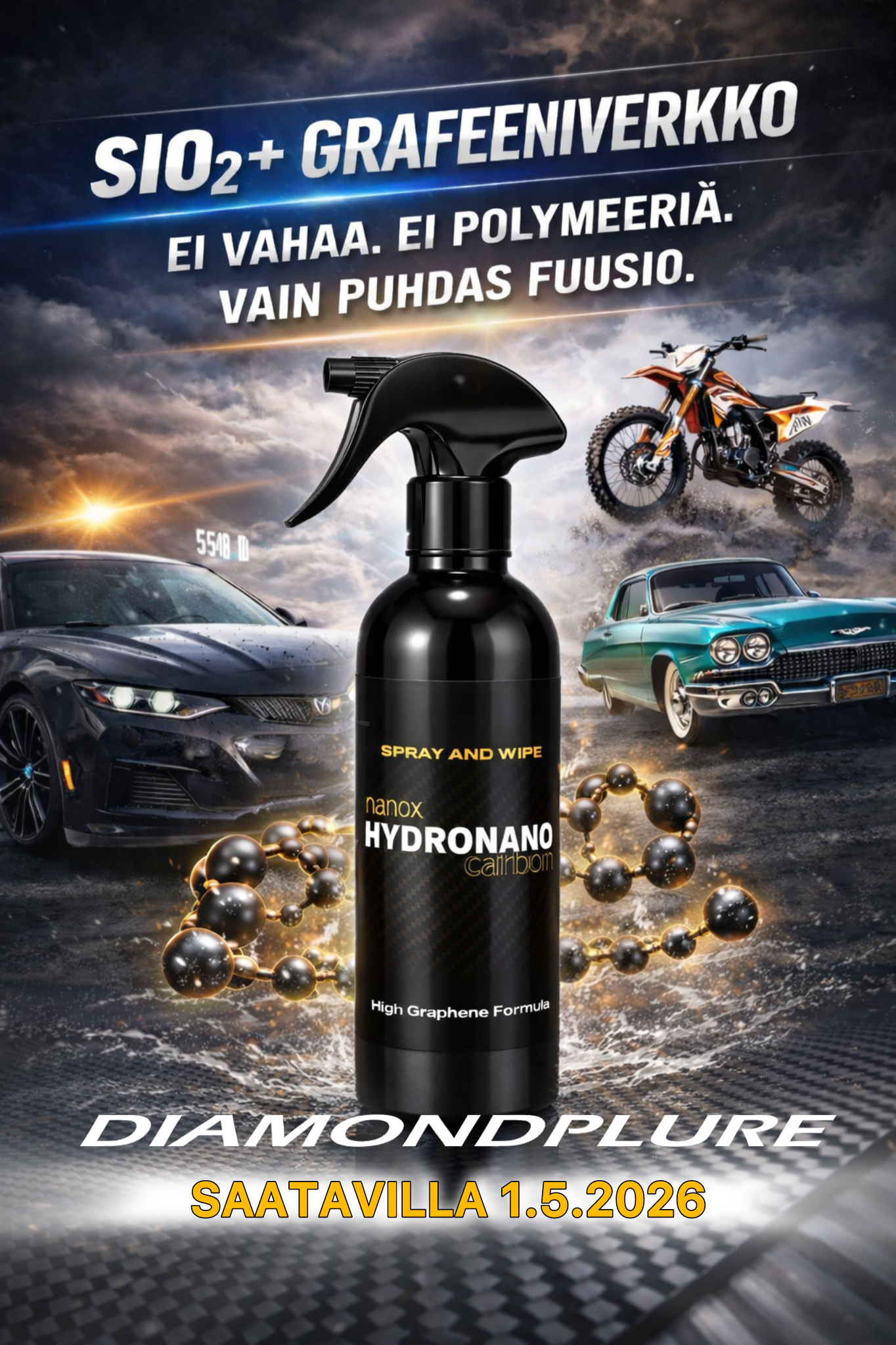 Keraaminen grafeeni hybrid SiO₂-pinnoite autoille ja raskaalle kalustolle.
